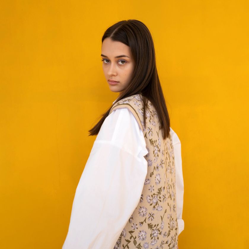 - Slightly fitted cut with straight design