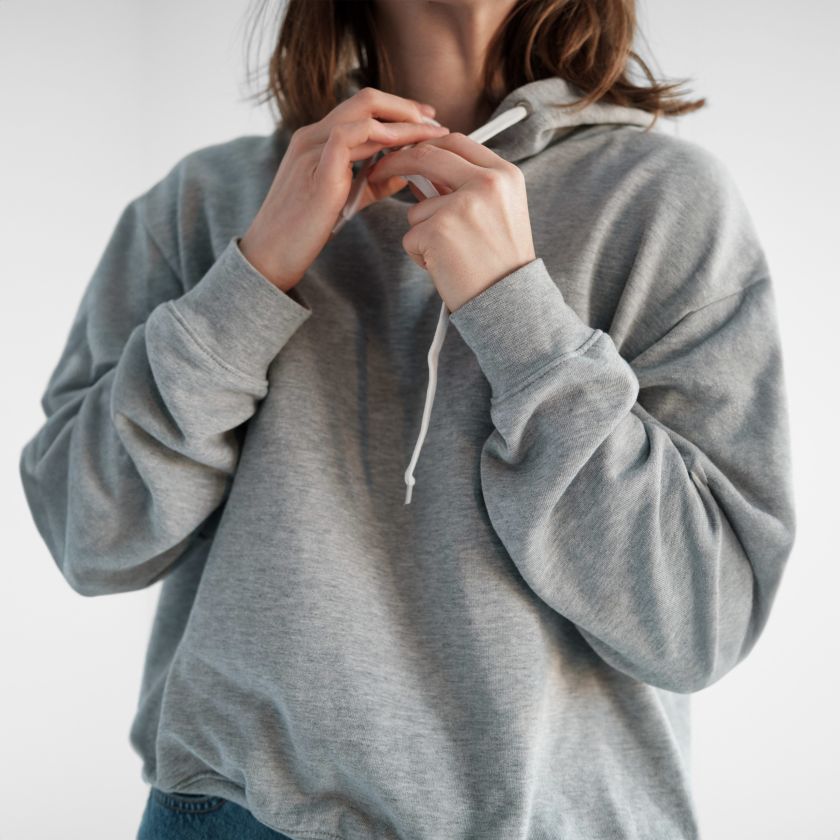 - Oversized, relaxed fit with hood and long sleeves