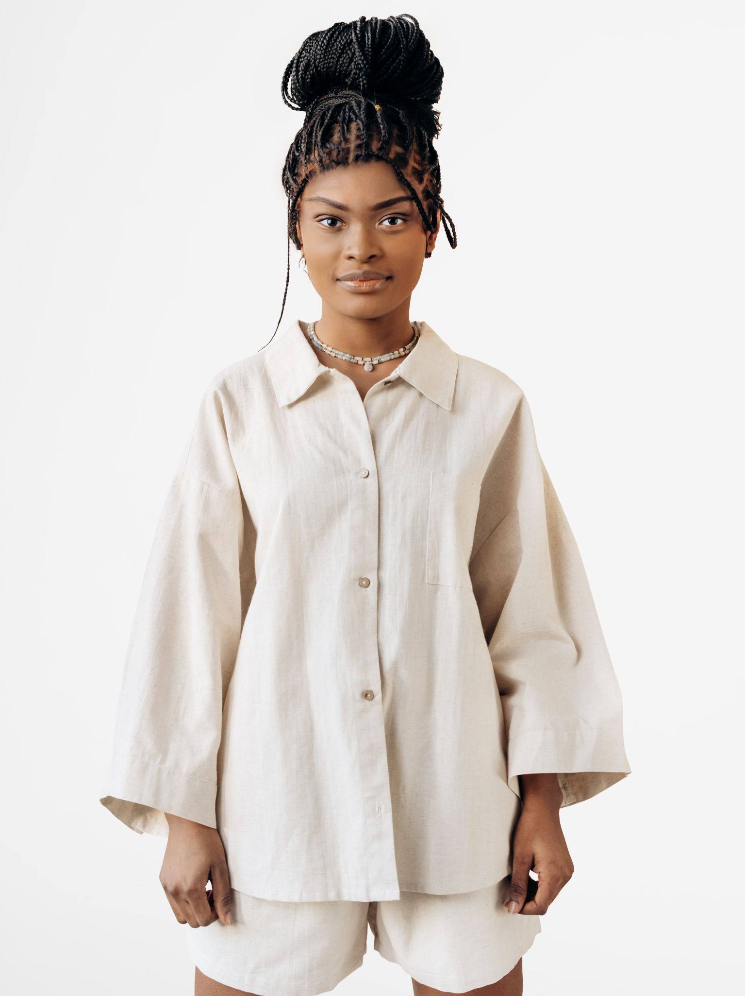 - Slightly fitted cut with straight design
