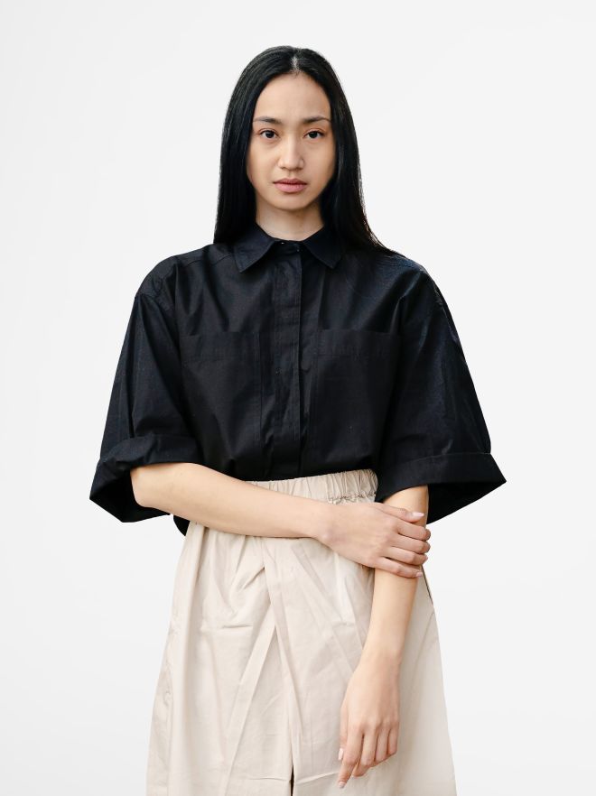 - Slightly fitted cut with straight design
